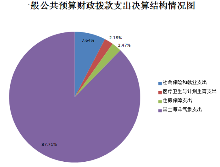 四、财政拨款收支决算情况 凉山州防震减灾局2016年度财政拨款收支总决算913.83 万元。与2015年相比,财政拨款收、支总计减少97.83万元,下降9.67%。 五、一般公共预算财政拨款支出决算情况 (一)一般公共预算财政拨款支出决算总体情况 凉山州防震减灾局2016年度一般公共预算财政拨款支出895.13万元,占本年支出合计的93.17%。与2015年相比,一般公共预算财政拨增加24万元,增长2.76%。 (二)一般公共预算财政拨款支出决算结构情况 凉山州防震减灾局2016年一般公共预算财政拨款支出 895.13万元,主要用于以下方面:社会保障和就业支出68.39万元,占7.64%;医疗卫生与计划生育支出19.49万元,占2.18%;住房保障支出22.12万元,占2.47%;国土海洋气象支出785.13万元,占87.71%。