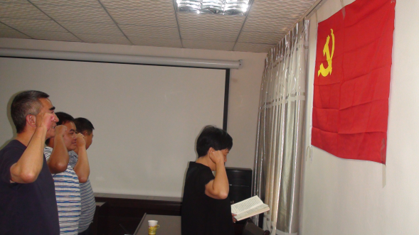 2016年6月1日,会东县防震减灾局召开全体党员会议,贯彻落实县委组织部关于“两学一做”相关工作,袁红霞局长主持会议。 会议学传达了《中共会东县委组织部关于认真做好当前“两学一做”学习教育重点工作的通知》(东组通〔2016〕27号)文件精神,原文学习了《党章》和《王东明在仪陇县安溪潮村作的党课报告》。会议还学习了换届纪律:五个主体责任,九严禁、九一律,六个坚决查处,六个必须,四必谈。 会议组织全体党员重温入党誓词,在党旗下庄重地宣誓。 会议要求:一是高度重视“两学一做”工作,提高党性修养要敬党、爱党、忠于党;二是严格遵守换届纪律,落实好会东县换届纪律及有关要求,党员干部要履行好监督权;三是每位党员必须在6月10日前撰写2篇心得体会;四是做好“两学一做”学习笔记,务必原文抄写《党章》,学习笔记将作为年度考核的重要依据;五是每月15日定为两学一做主题教育活动。  重温入党誓词 |