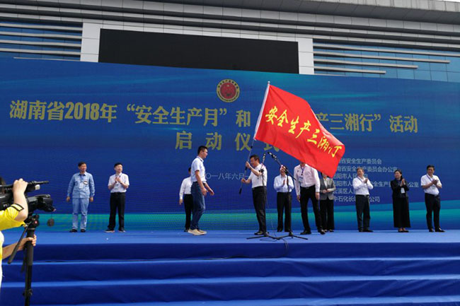 湖南省“安全生产月”和“安全生产三湘行”活动启动现场 为“安全生产三湘行”媒体代表授旗。