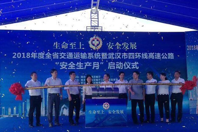 湖北省交通运输系统在武汉东四环工地上启动“安全生产月”活动。