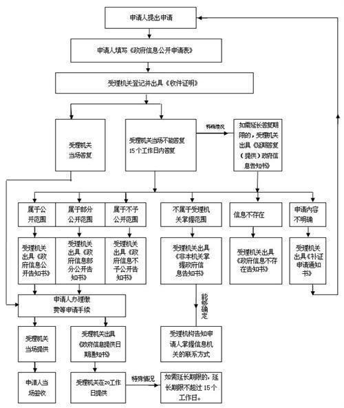 (一)索引号:索引号采用“前段码/后段码”的格式,州防震减灾局索引号形如“009050610/2014-00218”。前段码为信息发布单位的组织机构代码,后段码为“4位年份数字”加上“5位数字流水号”,中间用“-”链接。 (二)名称:系指每条政府公开信息的标题。 (三)内容概述:系指对每条政府公开信息内容的简要描述。 (四)生成日期:系指政府公开信息形成的时间。其中,对于公文类信息,特指该信息的发文时间。格式为CCYY-MM-DD。 (五)有效期:有效期包括信息的生效日期、废止日期两个标识。数据格式为CCYY-MM-DD。 (六)著录日期:系指政府公开信息的元数据在目录系统中生成或更新的时间。用于元数据内部管理,不需要向公众公开。 (七)文号:系指政府公开信息的文件编号。 (八)发布机构:系指政府信息发布单位的名称。 (九)关键词:系指反映政府公开信息内容特点的词语。 (十)信息分类:这里特指政府公开信息所属类别的标识,可并列采用多种分类方法。每一条政府信息,设有主题分类、体裁分类和服务对象分类三种对应的分类标识。 (十一)语种:系指政府公开信息采用的语言。 (十二)在线链接地址:系指政府公开信息在网络上的统一资源标识符(URI)。 三、州防震减灾局信息获取方式 (一)主动公开信息。 州防震减灾局主动公开信息自形成或者变更之日起20个工作日内,通过凉山州人民政府门户网站“中国凉山”信息公开专栏(http://xxgk2011.lsz.gov.cn/)、凉山州防震减灾局网站(http://www.synyou.com//)主动向社会公开,同时根据公开内容,适时采取新闻发布会以及报刊、广播、电视、政务微博等便于公众知晓的方式公开。 州防震减灾局信息公开检索场所: 1.凉山州人民政府门户网站“中国凉山”。 2.凉山州防震减灾局网站。 3.凉山州档案馆。 4.凉山州州防震减灾局政务微博“凉山防震减灾”(http://t.qq.com/lszfzjzj)。 (二)依申请公开信息。 1.受理申请机构。 州防震减灾局信息公开工作机构。 2.申请表的获取。 申请人可在凉山州人民政府门户网站“中国凉山”、州防震减灾局网站上下载电子版本。 3.申请的提交。 (1)通过传真方式。申请人将申请表传真至州防震减灾局政府信息公开工作机构。 (2)通过信函方式。申请人将申请表邮寄至州防震减灾局政府信息公开工作机构。 (3)通过现场(含书面、口头)方式。申请人到州防震减灾局政府信息公开工作机构提交申请。 (4)申请人可通过凉山州12345州长公开电话提交申请。 有下列情形之一的,申请人应当到州防震减灾局政府信息公开工作机构现场提交(提出)申请,并出示有效的身份证件或者证明文件: (1)申请人向行政机关申请提供与其自身相关的税费缴纳、社会保障、医疗卫生等政府信息的。 (2)行政机关认为申请人申请公开的政府信息涉及商业秘密、个人隐私,公开后可能损害第三方合法权益的。 4.申请办理流程。